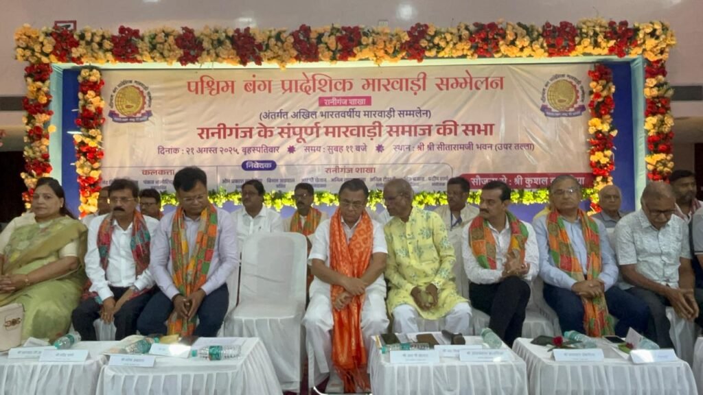 रानीगंज – पश्चिम बंगाल प्रादेशिक मारवाड़ी सम्मेलन की रानीगंज शाखा की ओर से गुरुवार को रानीगंज के सीताराम जी भवन में प्रथम सभा का आयोजन किया गया। इस मौके पर रानीगंज क्षेत्र सहित विभिन्न जिलों से आए मारवाड़ी समाज के लोग बड़ी संख्या में मौजूद रहे।कार्यक्रम में रानीगंज शाखा के अध्यक्ष ओमप्रकाश बाजोरिया,मुख्य सलाहकार राजेंद्र प्रसाद खेतान,संगठन के अध्यक्ष नंदकिशोर अग्रवाल,सचिव विमल अग्रवाल,कोलकाता से आए पंकज भालोटिया,आसनसोल शाखा अध्यक्ष नरेश अग्रवाल, वर्धमान शाखा अध्यक्ष प्रहलाद अग्रवाल, दुर्गापुर शाखा अध्यक्ष नारायण लेकर, पुरुलिया शाखा अध्यक्ष ओमप्रकाश केजरीवाल,बांकुड़ा शाखा अध्यक्ष नरेंद्र शर्मा समेत मारवाड़ी समाज के अनेक गणमान्य उपस्थित थे।सभा के दौरान सभी आमंत्रित अतिथियों का सम्मान किया गया। साथ ही मारवाड़ी समाज के विकास में योगदान देने वाले कई व्यक्तियों को भी विशेष रूप से सम्मानित किया गया।